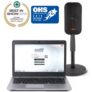 The 3M™ E-A-Rfit™ Dual-Ear Validation System is based on field microphone-in-real ear (F-MIRE) technology. The system consists of a specially designed loudspeaker equipped with a digital signal processor that allows for a consistent presentation of the test signal and real-time communication between the microphones, speaker and software. Specially designed, dual‐element microphones make it possible to measure the sound level at two different locations and for both ears simultaneously. The external microphones measure the level of the test signal outside the ear. The internal microphones are connected to one of the specially modified 3M™ probed hearing protectors to allow measurement of the sound level inside the wearer’s ear canal while the hearing protector is worn. The 3M™ E‐A‐Rfit™ Dual‐Ear Validation System also has earmuff testing capabilities. Both ears are accurately measured simultaneously, and in less than five seconds, a personal attenuation rating (PAR) is displayed.